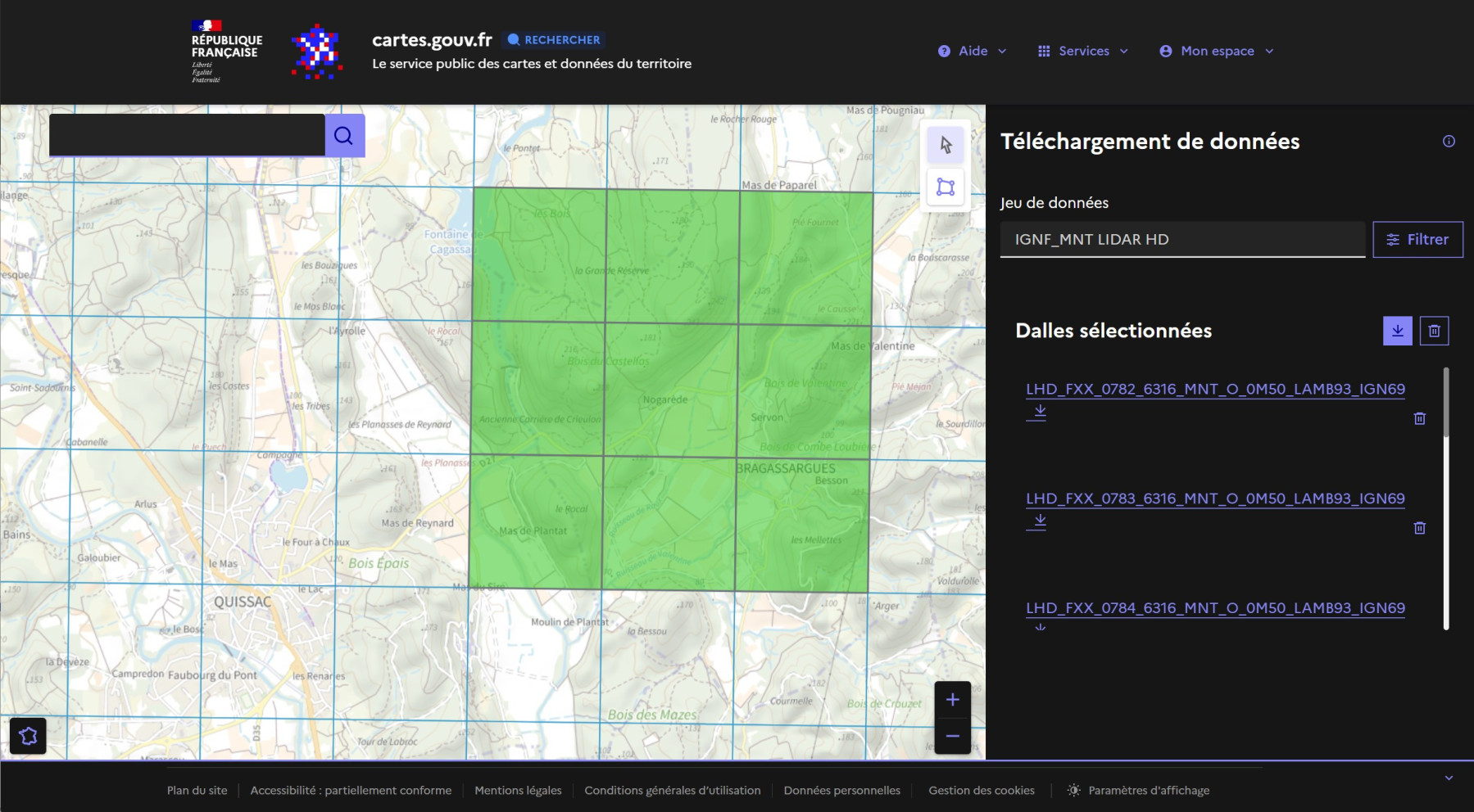 2) Assemblage des dalles HD IGN MNT (Modéle Numérique de Terrain)